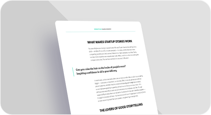 ESSENTIALS MANAGEMENT WHAT MAKES STARTUP STORIES WORK No one will give you money or agree to work for you if you’re bad at storytelling. Every pitch — whether it’s to a VC or a sales prospect — is a story, and the best ones have compelling narrative arcs that connect listeners to a higher purpose, says Faul. Today, he’s the COO of performance sportswear maker Athos, and this is critical to building the company every day. The number one factor for success: Enthusiasm Can you raise the hair on the backs of people’s arms? Inspiring conifdence is all in your delivery. In most cases, a story succeeds when you connect a smaller idea or action to something bigger — a purpose, a movement, an emotion. This is how you get people to follow you on a journey, whether they’re a customer following you through your product, or an employee agreeing to grueling startup hours to be a part of your vision. This skill becomes essential as soon as you have even one employee, says Faul. It’s your responsibility to keep them connected to the dream of what you’re building together — through the hardest of times. You have to look at it as an integral part of your job, just as or even more important than your product, engineering or design skills. THE LEVERS OF GOOD STORYTELLING Connecting to mission The undercurrent of every story you tell as a manager has to be your company’s purpose. At Facebook, Faul felt that his job managing the user operations team started with the organization’s drive the connect the world in positive ways. He knew a thread had to run directly from this central company purpose to every single individual on the team. Every person had to be able to relate to the company’s purpose, and their work had to have a clear and understandable impact on this purpose. In many cases, especially as companies grow, this becomes less and less clear. People’s work becomes increasingly narrow and niche. Stories are vital for clarifying ties between people’s every day and the long-term objective. “People’s intrinsic motivation comes from feeling that they’re doing something important. Their work moves people. It powers a vital part of the company,” says Faul. “Every single place I have been, there have been diiffcult times and tapping into this drive was the most important reason we retained talent and made it through. When I was in the Marines, we had a lot of unimaginably hard days. The leadership had to make us feel conifdent that our work, and therefore our commitment to the work, mattered.” 19