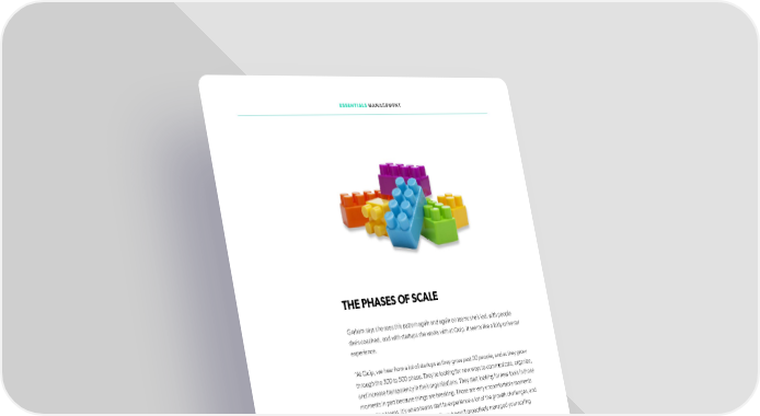 ESSENTIALS MANAGEMENT THE PHASES OF SCALE Graham says she sees this pattern again and again on teams she’s led, with people she’s coached, and with startups she works with at Quip. It seems like a fairly universal experience. “At Quip, we hear from a lot of startups as they grow past 50 people, and as they grow through the 300 to 500 phase. They’re looking for new ways to communicate, organize, and increase transparency in their organizations. They start looking for new tools in those moments in part because things are breaking. Those are very uncomfortable moments for scaling teams. It’s when teams start to experience a lot of the growth challenges, and when you can start to see problems if you haven’t proactively managed your scaling process.” Just as the personal experience of scaling comes with a separate, unique set of emotions, the phases a company goes through each have a character all their own. As either an employee or a partner, Graham has experienced each of these phases in turn, has absorbed the challenges that come with each, and has seen these changes handled both well and poorly. What follows is a deifnition of each of these movements in a company’s life, with one caveat: Like people, companies are distinct in how they work, look and feel. One startup may still feel like a “chaosfest” (Graham’s word) at 150 people, while another might feel bureaucratic and static at the same number. It all has to do with the unique character of the company — how it was founded, who its founders are, its product, etc. 58