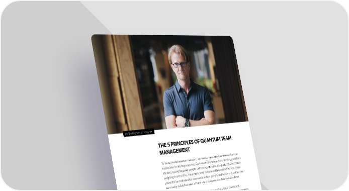 ESSENTIALS MANAGEMENT Jim Everingham at Instagram THE 5 PRINCIPLES OF QUANTUM TEAM MANAGEMENT To be successful quantum managers, we need to have vigilant awareness about our motivations for altering outcomes. Common motivations include: thinking your idea is the best, not trusting your people, or thinking you’re not doing your job unless you’re weighing in all the time. You actually want to follow a different set of instincts. Allow yourself to be motivated by: observable metrics going one direction or the other, your team being visibly frustrated with the rate of progress, or a deserved lack of trust. If we sense a project going sideways, it might be worth looking in the box and consciously changing the outcome. On the other hand, if the state of a project is entirely unknown or we sense that it’s going well, it’s better to allow for an unpredictable outcome. We do this by following these ifve principles: 1. Manage to multiple “states” as opposed to singular outcomes. The wisdom of traditional mechanical management teaches us to guide our team toward a single outcome, but such a tactic assumes that managers understand projects better than the team members working on them. An effective quantum manager will do everything in their power to organize teams strategically and then step back. By avoiding prescribed paths, agreeing to outcomes, and providing each team with equal parts space and guidance, quantum managers set up their team for inifnite success. Focus on increasing the number of “states of success” if you can. Your cat doesn’t have to be either dead or alive. Your cat could be happy, not doing that well, or doing pretty poorly but still alive. These are all other outcomes. The more states of success you can 11