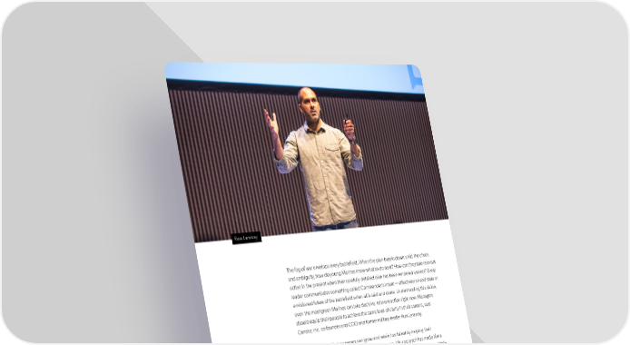 ESSENTIALS MANAGEMENT Russ Laraway The fog of war envelops every battleifeld. When the plan breaks down amid the chaos and ambiguity, how do young Marines know what to do next? How can they take relevant action in the present when their carefully detailed plan has been rendered useless? Every leader communicates something called Commander’s Intent — effectively an end state or envisioned future of the battleifeld when all is said and done. Understanding this vision, even the most green Marines can take decisive, relevant action right now. Managers should equip their people to achieve the same level of clarity in their careers, says Candor, Inc. co-founder and COO and former military leader Russ Laraway. Laraway believes that managers can grow and retain top talent by helping their employees articulate long-term vision for their careers. His approach has made him a sought-atfer advisor on the issue of employee retention and talent development. While at Google, his framework for career development led to more than a 10-point bump on engagement scores across hundreds of employees. In addition to Google, Laraway’s career spans operational and management roles at Twitter, founding and leading his own supply chain consulting ifrm and serving as a Company Commander in the Marine Corps, in which he oversaw 175 Marines. Drawing from his talk at First Round’s CEO Summit and additional conversations, Laraway explains a servant leader’s approach to career conversations, a tool that accelerates development, enhances engagement and boosts retention in teams. He lays out a step-by-step approach for creating meaningful dialogue and details pitfalls to avoid. Any startup seeking to keep its talent for the long term will gain helpful tips from Laraway’s framework. 110