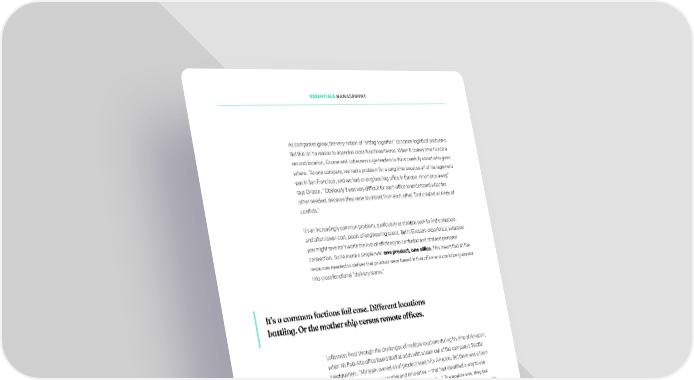 ESSENTIALS MANAGEMENT As companies grow, the very notion of “sitting together” can pose logistical problems. But this isn’t a reason to abandon cross-functional teams. When it comes time to add a second location, Grosse and Lotfesness urge leaders to think carefully about who goes where. “At one company, we had a problem for a long time because all of management was in San Francisco, and we had an engineering oiffce in Europe, nine hours away,” says Grosse. “Obviously it was very diiffcult for each oiffce to understand what the other needed, because they were so distant from each other. That created all kinds of conlficts.” It’s an increasingly common problem, particularly as startups seek to ifnd untapped, and otfen lower-cost, pools of engineering talent. But in Grosse’s experience, whatever you might save isn’t worth the loss of eiffciency to confusion and strained personal connection. So he made a simple rule: one product, one oiffce. This meant that all the resources needed to deliver that product were based in that oiffce and could be grouped into cross-functional “delivery teams.” It’s a common factions fail case. Different locations battling. Or the mother ship versus remote ofifces. Lotfesness lived through the challenges of multiple locations during his time at Amazon, when his Palo Alto oiffce found itself at odds with a team out of the company’s Seattle headquarters. “My team owned all of product search for Amazon. But there was a team in Seattle — they were very creative and innovative — that had identiifed a way to use personalization technology to actually make search better,” The trouble was, they put innovation above all else, and started running A/B tests on the search pages that we were responsible for. We were getting paged when there were bugs in the middle of the night. So that deifnitely exacerbated the tension. Both teams got stuck in their way of thinking — innovation versus reliability — and wasted energy looking for the other team’s fail cases to make their points.” Ultimately, though, those A/B tests were proving that the new technology could have a big impact on Amazon’s user experience — and its bottom line. “We started calming things down by having a weekly call to share notes and projects, which began a little bit of healing,” says Lotfesness. “But both sides ultimately agreed that the new technology needed to be transferred to the search team so we could incorporate it into our technology roadmap. This would avoid both technical and human conlficts, and the other team could focus on new innovations.” 93