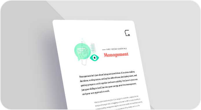FIRST ROUND ESSENTIALS Management Management isn’t just about being someone’s boss. It involves making decisions, scaling teams, setting the cultural tone, developing talent, and getting groups to work together and move quickly. You have to grow not just your ability to lead, but also your energy, your time management, and your own approach to work. Whether you’re transitioning from IC to manager for the ifrst time, stepping into the manager-of-managers role, or struggling as a founder to shitf from product building to company building, management requires a distinct set of skills. And it will likely be wholly new and different from whatever it was you were excelling at before, which can be disorienting and daunting, to say the least. Given that a manager’s journey can otfen feel like a lonely uphill climb in the dark, we’ve assembled the most essential advice from the Review canon to help light the path forward. As you look to settle into the manager’s role and build larger and larger teams, this collection of articles will help you nail that transition. From frameworks that will help you execute with momentum and give your team autonomy, to tactics for leading impactful career conversations and helping others navigate the rapidly changing cultural waters of a fast-growing startup, we’ve selected insightful interviews that highlight the habits, processes, and actions the best managers have used to grow themselves as leaders. We hope they do the same for you. 2