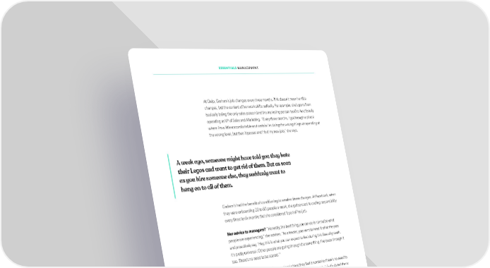 ESSENTIALS MANAGEMENT At Quip, Graham’s job changes every three months. This doesn’t mean her title changes, but the content of her work shitfs radically. For example, she’s gone from basically being the only sales person (and the marketing person too!) to functionally operating as VP of Sales and Marketing. “Every three months, I go through a phase where I’m a little uncomfortable and certain I’m doing the wrong things or operating at the wrong level, but then it passes and I ifnd my new job,” she says. A week ago, someone might have told you they hate their Legos and want to get rid of them. But as soon as you hire someone else, they suddenly want to hang on to all of them. Graham’s had the beneift of conditioning to weather these changes. At Facebook, when they were onboarding 20 to 60 people a week, she got so used to ceding responsibility every three to six months that she considered it part of her job. Her advice to managers? “Honestly, the best thing you can do is normalize what people are experiencing,” she advises. “As a leader, you want to head it off at the pass and proactively say, ‘Hey, this is what you can expect to feel during this time of growth. It’s pretty universal. Other people are going through the same thing. I’ve been through it too. There’s no need to be scared.’” Help them understand that the emotional chaos they feel is normal so there’s no need to overreact. And in fact, they should otfen do the opposite of what their instincts tell them: Don’t latch onto the Legos you had before. Give them away and move on to building the next taller, cooler tower. “Listen to the questions people ask during your one-on-ones or in team meetings. When you start to hear a lot of, ‘So… why did we hire that person?’ or ‘Do we really need someone to do that job?’ or ‘Is Suzie going to take over this project?’ Those are the signs that either individually or collectively, you should start talking to your team about giving away their Legos.” One thing you can encourage people to do is not ifxate or act on their emotions right when new people come aboard. Instead, tell them to ride it out and see how they feel in three weeks or a month — that’s when they should be coming out the other side and feeling better. Maybe set a meeting up to chat atfer that time has passed to see how things are going. That’s a good way to keep an eye on how scale is affecting your team, says Graham. 56