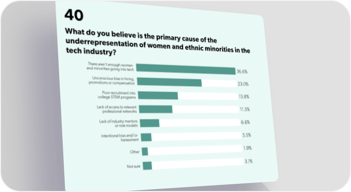 40 What do you believe is the primary cause of the underrepresentation of women and ethnic minorities in the tech industry?