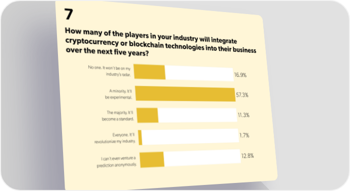 7 How many of the players in your industry will integrate cryptocurrency or blockchain technologies into their business over the next five years?