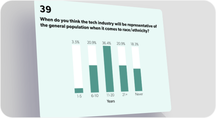 39 When do you think the tech industry will be representative of the general population when it comes to race/ethnicity?