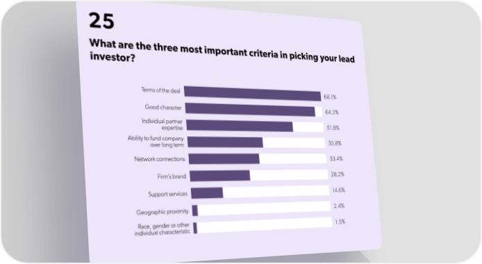 25 What are the three most important criteria in picking your lead investor?