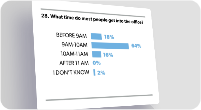 28. What time do most people get into the office?