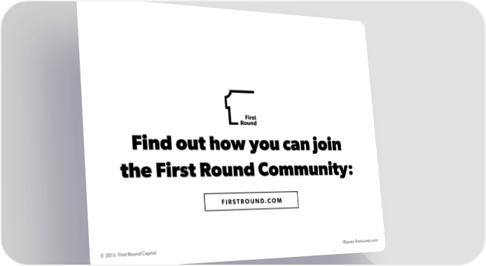 Find out how you can join the First Round Community: FIRSTROUND.COM © 2015 First Round Capital 10years.firstround.com